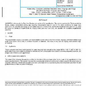 This specification covers a corrosion- and heat-resistant nickel alloy in the form of bars, forgings, and flash-welded rings under 4.00 inches (101.6 mm) in nominal thickness or diameter, and stock of any size for forging, flash-welded rings, or heading.