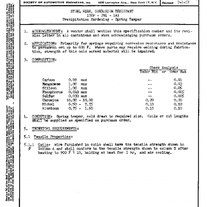 STEEL WIRE, CORROSION RESISTANT 17Cr – 7Ni – 1Al Precipitation Hardening – Spring Temper