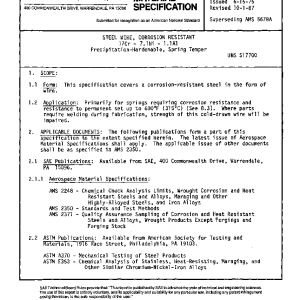 STEEL WIRE, CORROSION RESISTANT 17Cr – 7.1Ni – 1.1Al Precipitation-Hardenable, Spring Temper