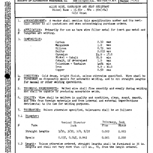 ALLOY WIRE, CORROSION AND HEAT RESISTANT Nickel Base – 15.5Cr – 8Fe – 2Cb(+Ta) Cold Drawn