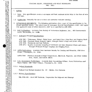 This specification covers a corrosion and heat resistant nickel alloy in the form of rods and wire.