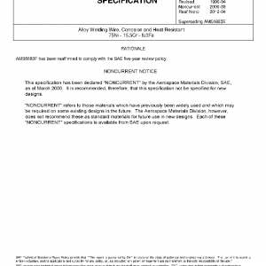 Alloy Welding Wire, Corrosion and Heat Resistant 75Ni – 15.5Cr – 8.0Fe(NONCURRENT Mar 2000)