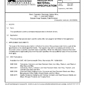Steel, Corrosion Resistant, Safety Wire, 18Cr – 11.5Ni (SAE 30305) Solution Heat Treated, Cold Finished