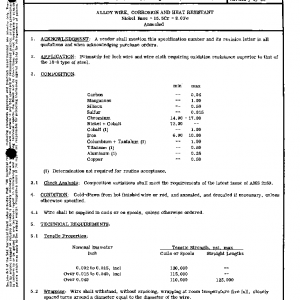 ALLOY WIRE, CORROSION AND HEAT RESISTANT Nickel Base – 15.5Cr – 8.0Fe Annealed