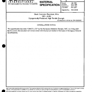Steel, Corrosion Resistant, Wire 18cr 9.0ni Cryogenically Produced, High Tensile Strength(Cancelled May 2001)