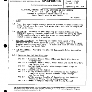 This specification covers a corrosion and heat resistant nickel alloy in the form of bars, forgings, flash welded rings, and stock for forging or flash welded rings.