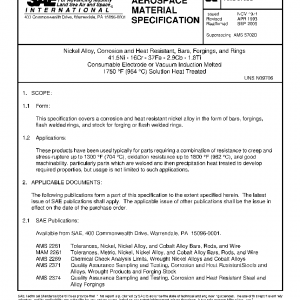 Nickel Alloy, Corrosion and Heat Resistant, Bars, Forgings, and Rings 41.5Ni – 16Cr – 37Fe – 2.9Cb – 1.8Ti Consumable Electrode or Vacuum Induction Melted 1750 °F (954 °C) Solution Heat Treated