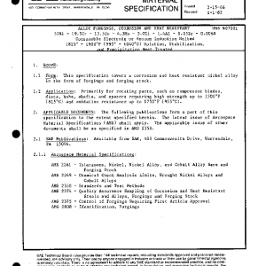 This specification covers a corrosion and heat resistant nickel alloy in the form of forgings and forging stock.
