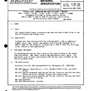 This specification covers a corrosion and heat resistant nickel alloy in the form of forgings and forging stock.