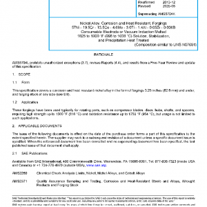This specification covers a corrosion and heat-resistant nickel alloy in the form of forgings 3.25 inches (82.6 mm) and under, and forging stock of any size (see 8.6).