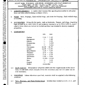 ALLOY BARS, FORGINGS, AND RINGS, CORROSION AND HEAT RESISTANT Nickel Base – 19.5Cr – 13.5Co – 4.3Mo – 3.0Ti – 1.4Al Solution Heat Treated, 1825 – 1900 F (996.1 – 1037.8 C) Treatment Consumable Electrode or Vacuum Induction Melted