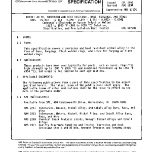 NICKEL ALLOY, CORROSION AND HEAT RESISTANT, BARS, FORGINGS, AND RINGS 58Ni – 19.5Cr – 13.5Co – 4.3Mo – 3.0Ti – 1.4Al – 0.05Zr – 0.006B Consumable Electrode or Vacuum Induction Melted 1825 to 1900 °F (996 to 1038 °C) Solution, Stabilization, and Precipitation Heat Treated