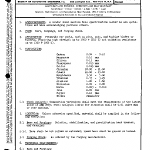 ALLOY BARS AND FORGINGS, CORROSION AND HEAT RESISTANT Nickel Base – 19.5Cr – 13.5Co – 4.3Mo – 3.0Ti – 1.4Al Solution, Stabilization, and Precipitation Heat Treated. 1975 F (1079.4 C) Treatment Consumable Electrode or Vacuum Induction Melted