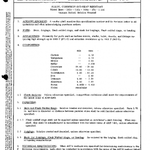 ALLOY, CORROSION AND HEAT RESISTANT Nickel Base – 19Cr – 11Co – 10Mo – 3Ti – 1.5Al Vacuum Melted, Solution Treated