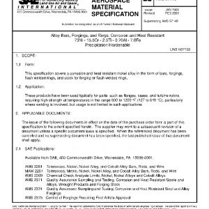 This specification covers a corrosion and heat resistant nickel alloy in the form of bars, forgings, flash welded rings, and stock for forging or flash welded rings.