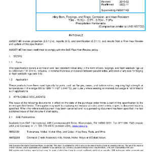 This specification covers a corrosion and heat-resistant nickel alloy in the form of bars, forgings, and flash welded rings up to 4.000 inch (101.6 mm), inclusive, in nominal thickness or distance between parallel sides, and stock of any size for forging or flash welded rings (see 8.6).
