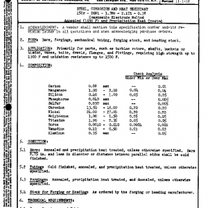STEEL, CORROSION AND HEAT RESISTANT 15Cr – 26Ni – 1.3Mo – 2.1Ti – 0.3V Consumable Electrode Melted Annealed (1650 F) and Precipitation Heat Treated