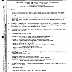 This specification covers a corrosion and heat resistant steel in the form of solution and precipitation heat treated bars, wire, forgings, and mechanical tubing, and of stock for forging or heading.