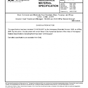 Steel, Corrosion and Moderate Heat Resistant, Bars, Forgings, and Rings, 14.5Cr – 6.5Ni – 0.72Ti, Solution Heat Treated and Maraged, 180,000 psi (1240 MPa) Tensile Strength (Cancelled May 2006)