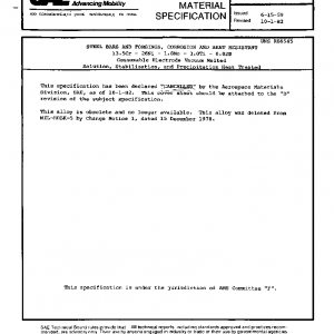 Steel, Corrosion and Heat Resistant 13.5Cr – 26Ni – 1.75Mo – 3Ti Consumable Electrode Vacuum Melted(Cancelled Oct 1982)
