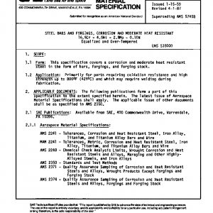 This specification covers a corrosion and moderate heat resistant steel in the form of bars, forgings, and forging stock.