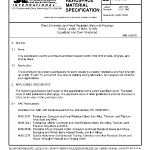 Steel, Corrosion and Heat Resistant, Bars and Forgings 16.5Cr – 4.5Ni – 2.9Mo – 0.10N Equalized and Over-Tempered