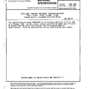 This specification has been “CANCELLED” by the Aerospace Materials Division, SAE, as of October, 1991.