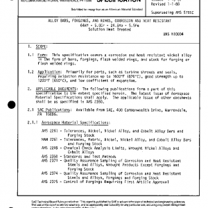 This specification covers a corrosion and heat resistant nickel alloy in the form of bars, forgings, flash welded rings, and stock for forging or flash welded rings.