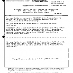 This specification has been declared “CANCELLED” by the Aerospace Materials Division, SAE, as of January 1990.