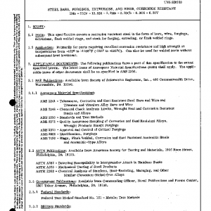 This specification covers a corrosion resistant steel in the form of bars, wire, forgings, extrusions, flash welded rings, and stock for forging, extruding, or flash welded rings.