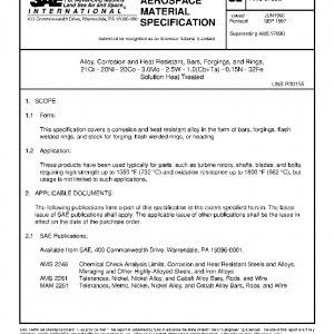 This specification covers a corrosion and heat resistant alloy in the form of bars, forgings, flash welded rings, and stock for forging, flash welded rings, or heading.
