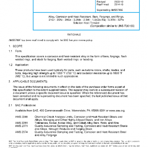 This specification covers a corrosion and heat-resistant alloy in the form of bars, forgings, flash welded rings, and stock for forging, flash welded rings, or heading.