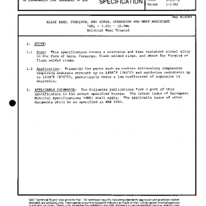 This specification covers a corrosion and heat resistant nickel alloy in the form of bars, forgings, flash welded rings, and stock for forging or flash welded rings.