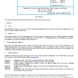 This specification covers a corrosion and heat-resistant nickel alloy in the form of bars, forgings, flash welded rings, and stock for forging or flash welded rings.