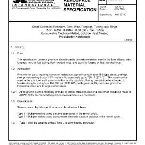 Steel, Corrosion Resistant, Bars, Wire, Forgings, Tubing, and Rings 15Cr – 6.5Ni – 0.75Mo – 0.30 (Cb + Ta) – 1.5Cu Consumable Electrode Melted, Solution Heat Treated Precipitation Hardenable