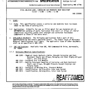 This specification covers a corrosion and moderate heat resistant steel in the form of welding wire.