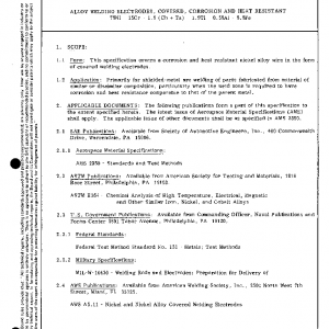 This specification covers a corrosion and heat resistant nickel alloy wire in the form of covered welding electrodes.