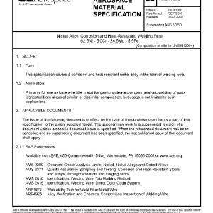 This specification covers a corrosion and heat-resistant nickel alloy in the form of welding wire.