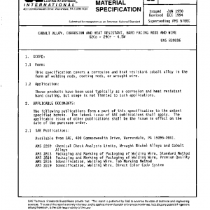 This specification covers a corrosion and heat resistant cobalt alloy in the form of welding rods, coating rods, or wrought wire.