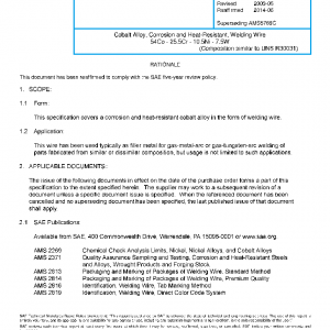This specification covers a corrosion and heat-resistant cobalt alloy in the form of welding wire.