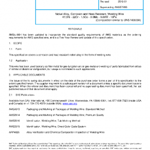 This specification covers a corrosion and heat-resistant nickel alloy in the form of welding wire.
