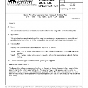 This specification covers a corrosion and heat resistant nickel alloy in the form of welding wire.