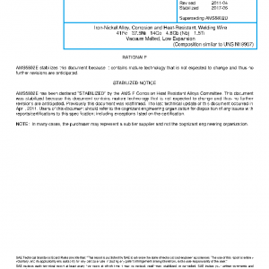 Iron-Nickel Alloy, Corrosion and Heat-Resistant, Welding Wire 41Fe – 37.5Ni – 14Co – 4.8Cb (Nb) – 1.5Ti Vacuum Melted, Low Expansion(STABILIZED Jun 2017)
