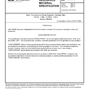 Steel, Corrosion and Heat-Resistant, Welding Wire 16.4Cr – 4.8Ni – 0.22Cb – 3.6Cu Vacuum Melted(NONCURRENT Nov 2007)