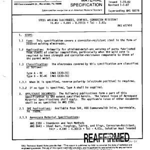 STEEL WELDING ELECTRODES, COVERED, CORROSION RESISTANT 16.4Cr – 4.8Ni – 0.22(Cb + Ta) – 3.6Cu