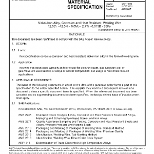 This specification covers a corrosion and heat resistant nickel-iron alloy in the form of welding wire.