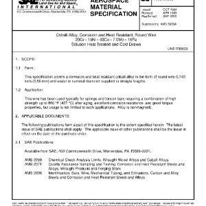 This specification covers a corrosion and heat resistant cobalt alloy in the form of round wire 0.140 inch (3.56 mm) and under in nominal diameter supplied in straight lengths.