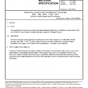 This specification covers a corrosion and heat-resistant cobalt alloy in the form of round wire 0.140 inch (3.56 mm) and under in nominal diameter supplied in straight lengths.