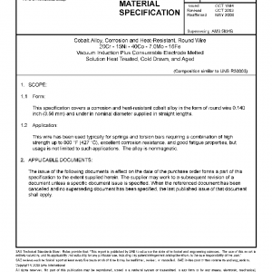 This specification covers a corrosion and heat-resistant cobalt alloy in the form of round wire 0.140 inch (3.56 mm) and under in nominal diameter supplied in straight lengths.