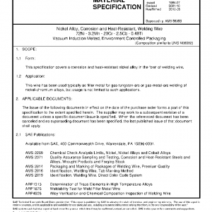 This specification covers a corrosion and heat-resistant nickel alloy in the form of welding wire.
